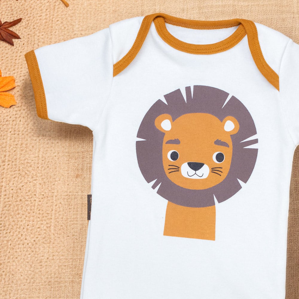 Body Para Bebê Manga Curta Leãozinho - Creme