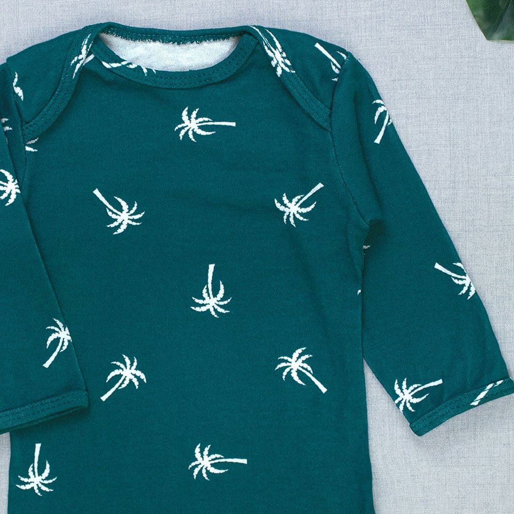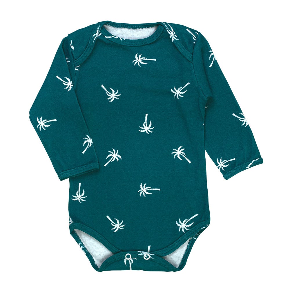 Body Bebê Manga Longa Verde - Estampa Coqueiros