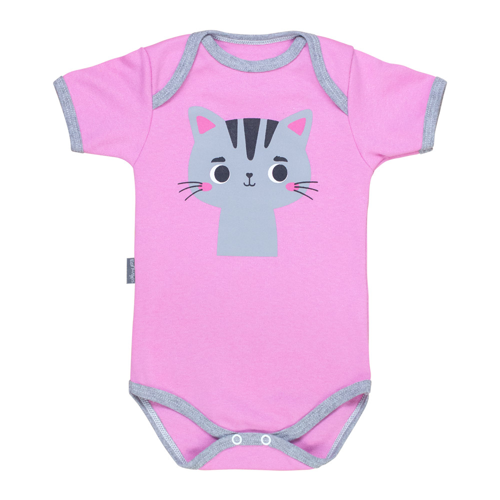 Body Para Bebê Manga Curta Gatinha Rosa - Era Uma Vez
