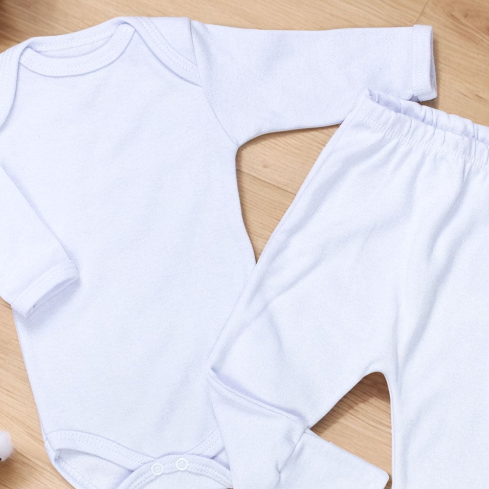 - Design: Bodies com fechamento prático para facilitar a troca de fraldas e calças com pé reversível que protegem os pezinhos.