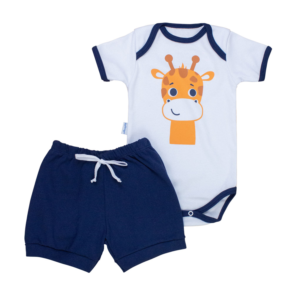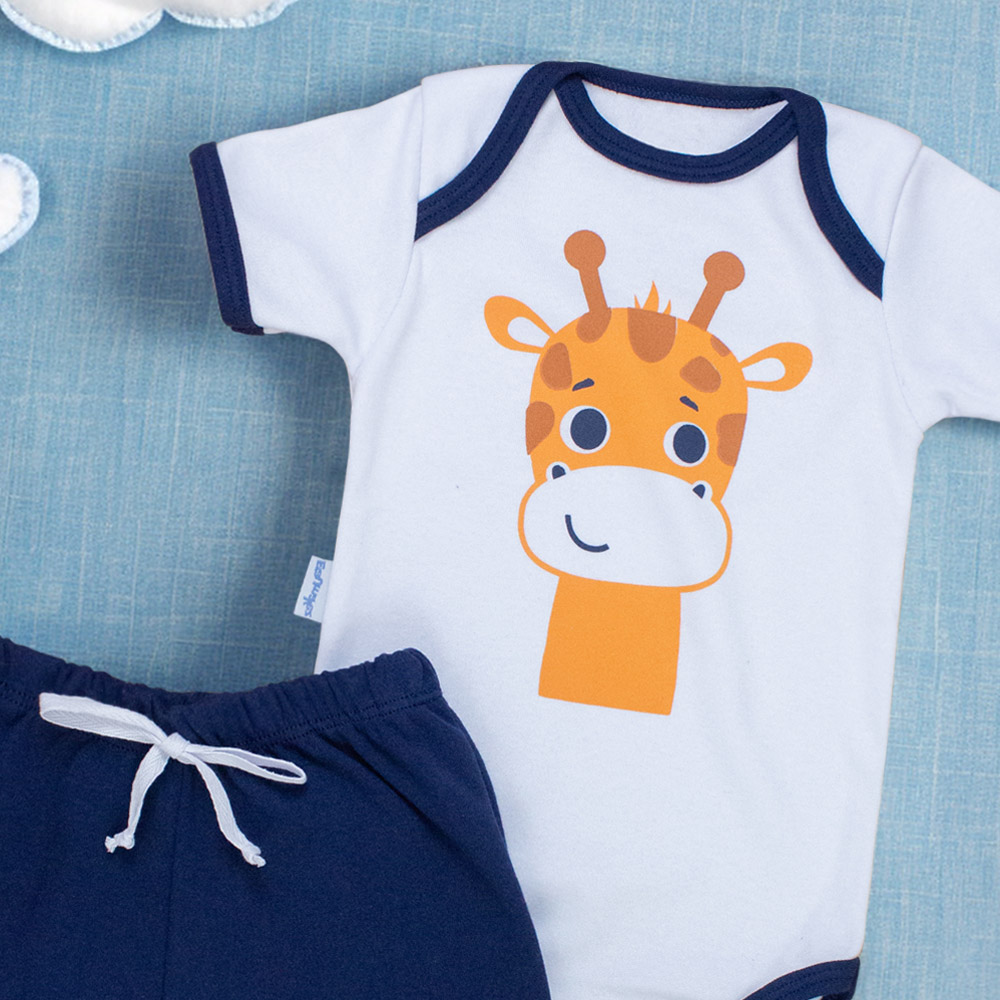 Conjunto Curto para Bebê Girafinha - Azul Marinho - Era Uma Vez