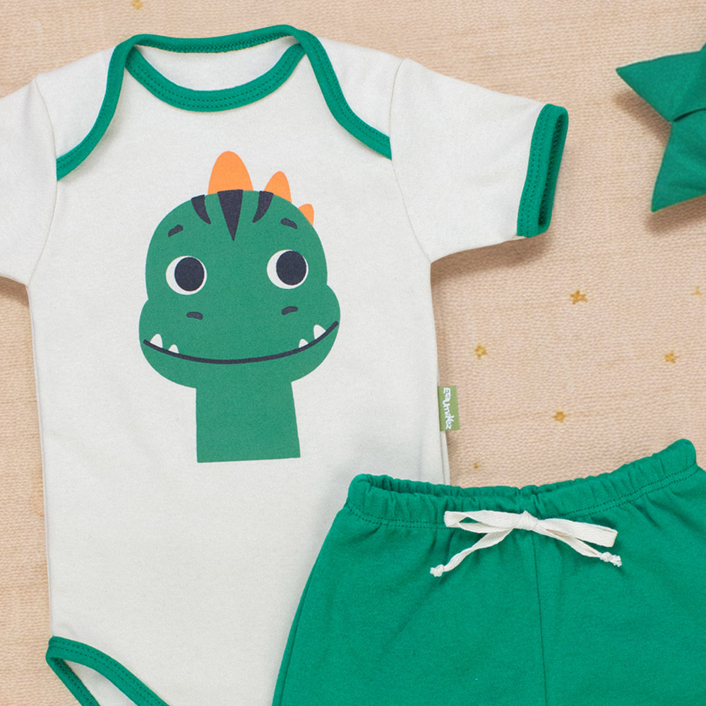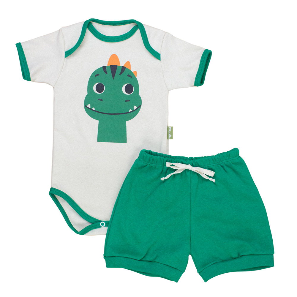 Conjunto Curto para Bebê Dino Verde - Era Uma Vez