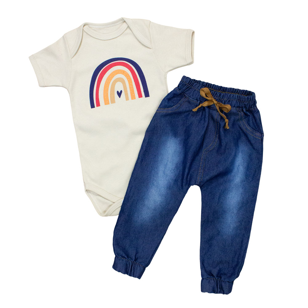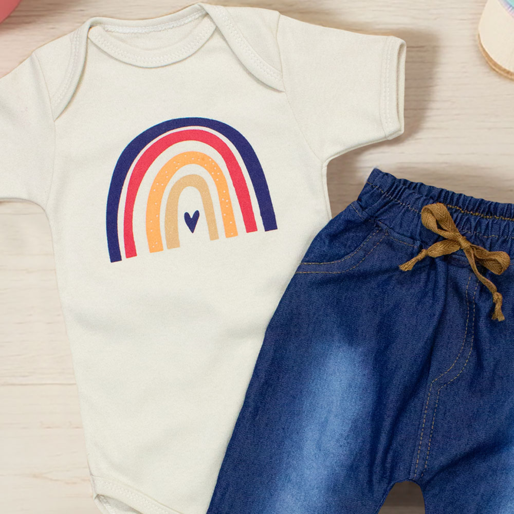 O Conjunto Body Curto com Calça Arco-Íris Boho é a escolha perfeita para vestir seu bebê com conforto e estilo. Este conjunto, em suave algodão, é ideal para bebês de 0 a 12 meses, atendendo tanto meninas quanto meninos. Deixe seu pequeno brilhar como um arco-íris neste verão!