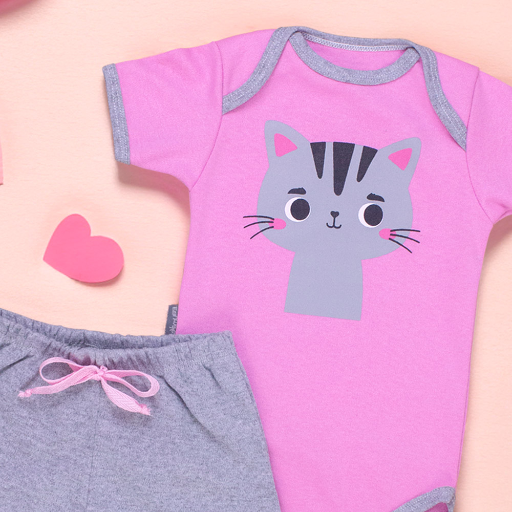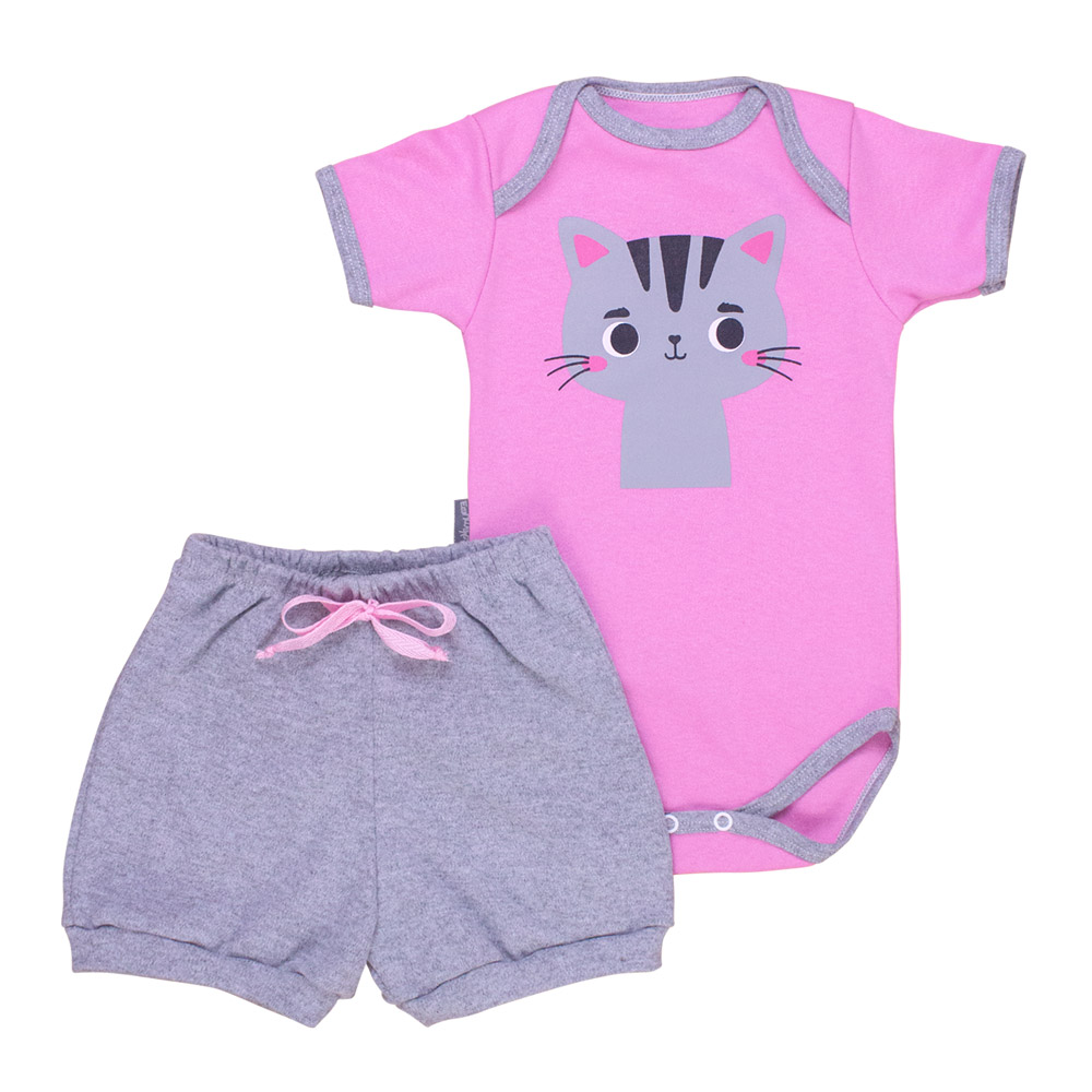 Conjunto Curto para Bebê Gatinha Mescla - Um Charme para Meninas