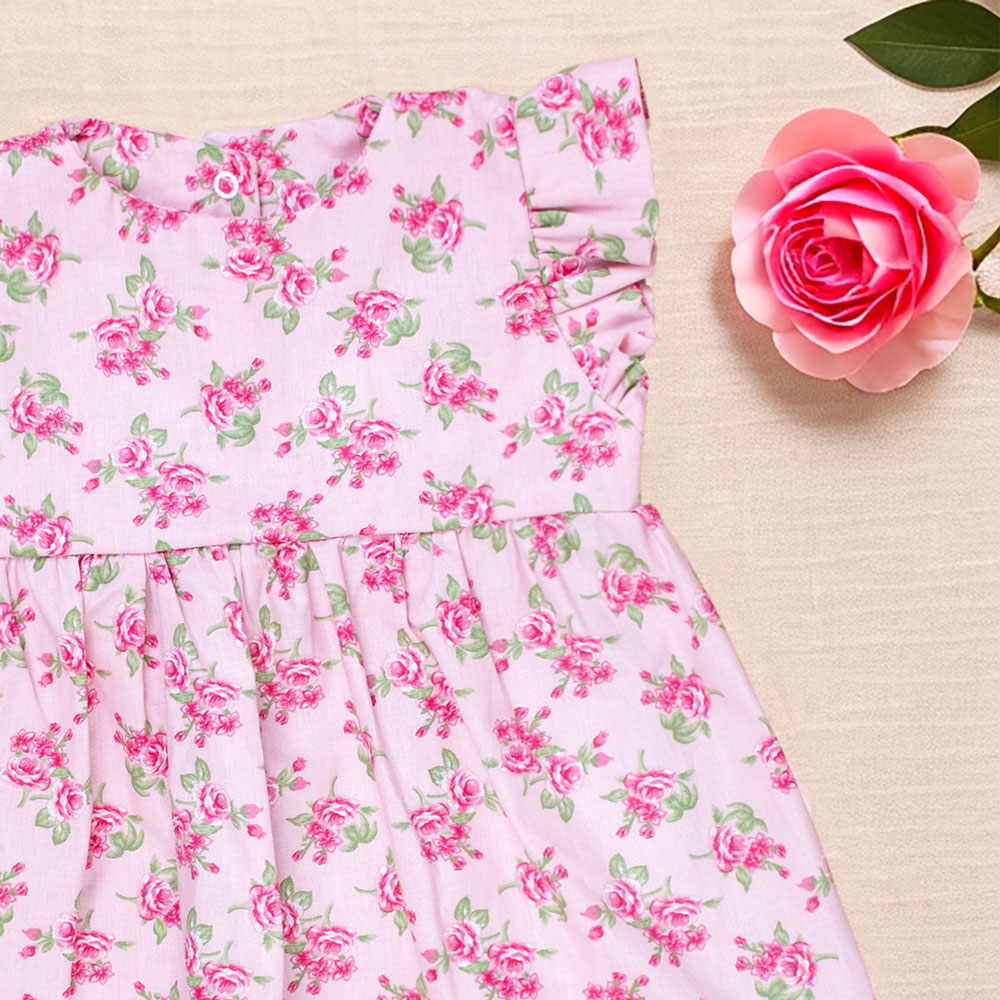 Vestido para Bebê Tricoline Floral Rosa - Elegância e Conforto